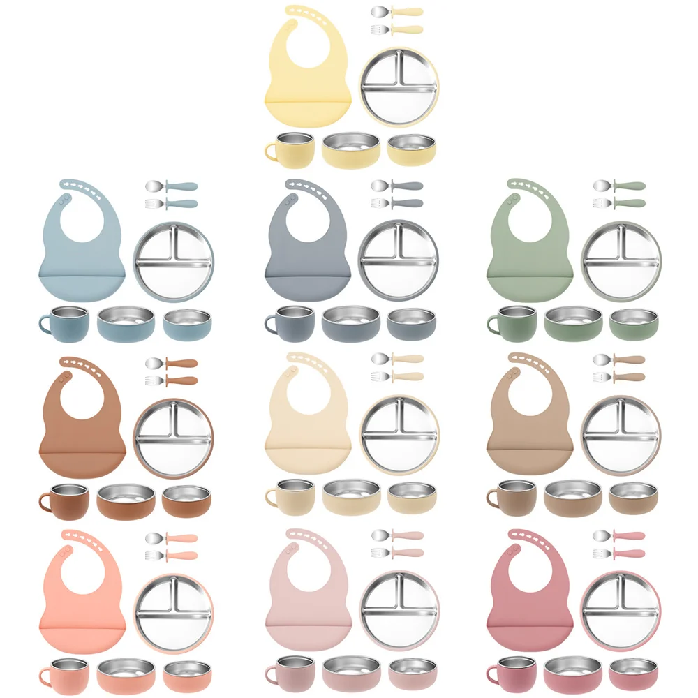 Kit Vaisselle Bébé 7 Pièces Inox & Silicone | Anti-dérapant